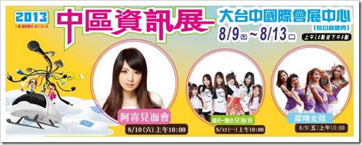 8/9號至13號 2013中區資訊展 大台中國際會展中心!!優惠好康 A不完~~