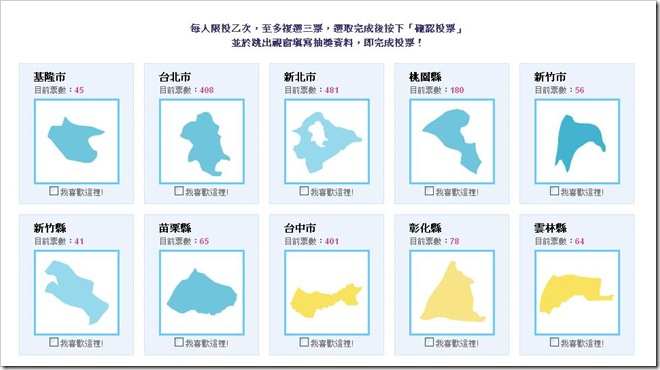 活動辦法:請選擇最幸福的城市進行投票,每人最多可投三票。